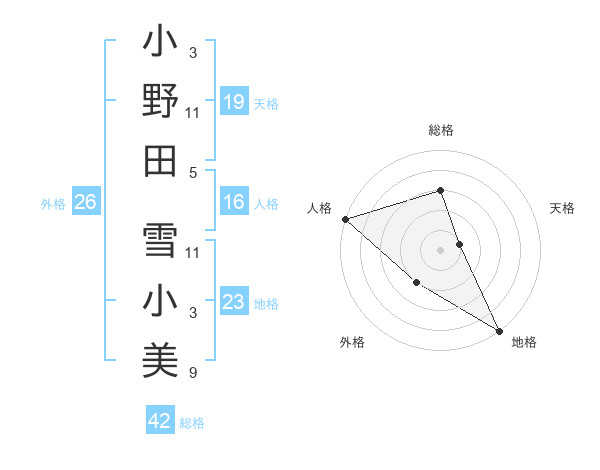 小野田 雪小美さんを姓名の画数から五運を鑑定