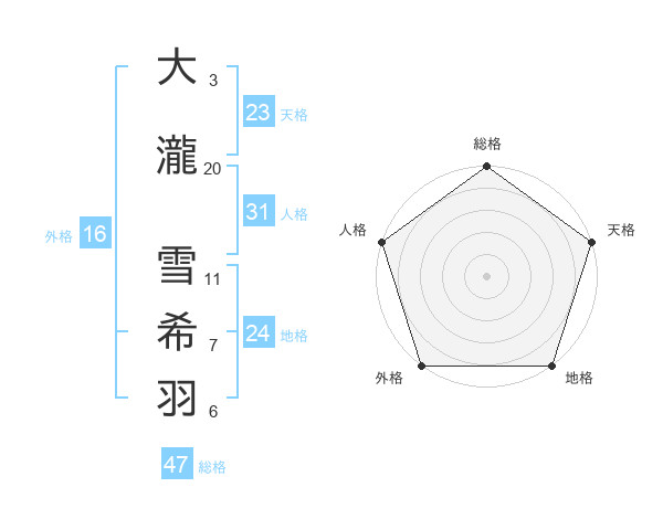 大瀧 雪希羽さんを姓名の画数から五運を鑑定