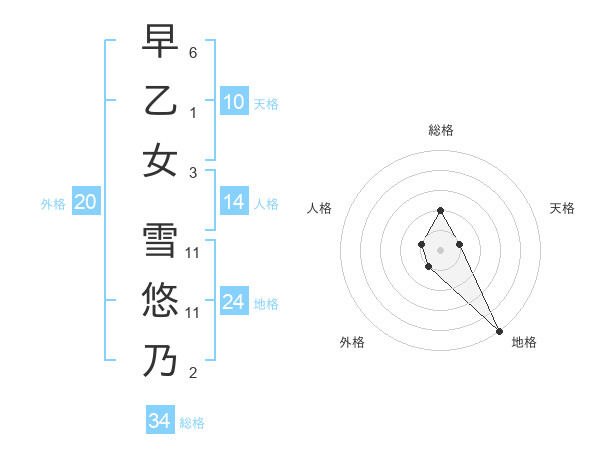 早乙女 雪悠乃さんを姓名の画数から五運を鑑定