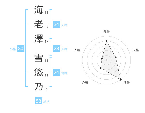海老澤 雪悠乃さんを姓名の画数から五運を鑑定