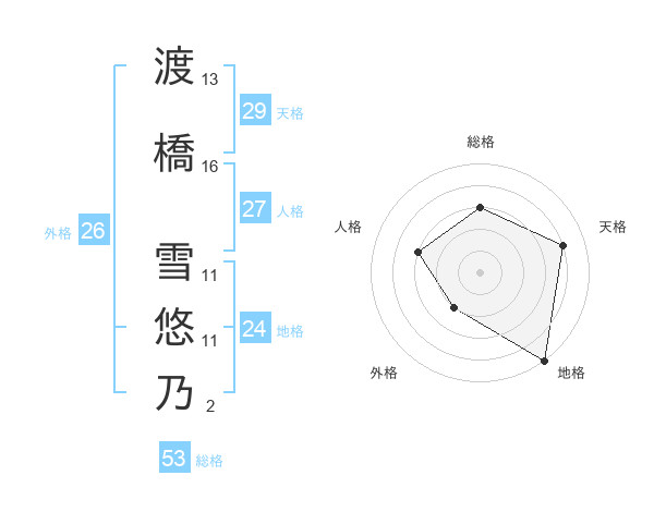 渡橋 雪悠乃さんの総格は53画の3点!