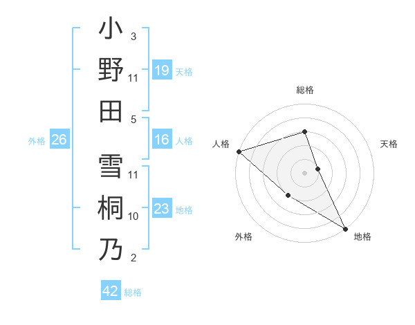 小野田 雪桐乃さんを姓名の画数から五運を鑑定