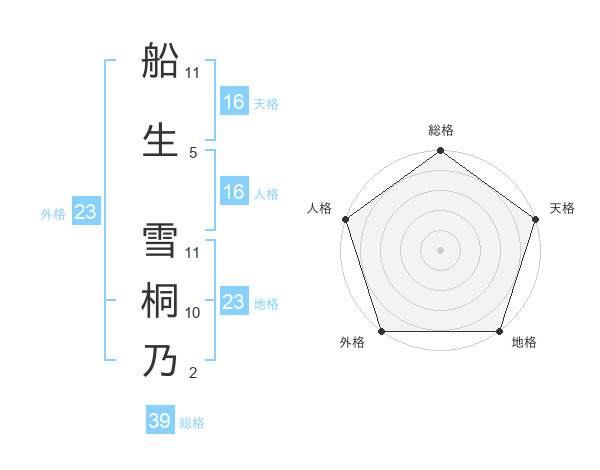船生 雪桐乃さんを姓名の画数から五運を鑑定