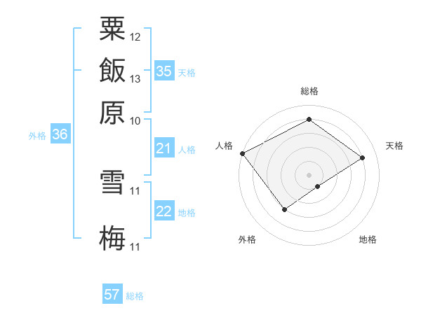 粟飯原 雪梅さんを姓名の画数から五運を鑑定