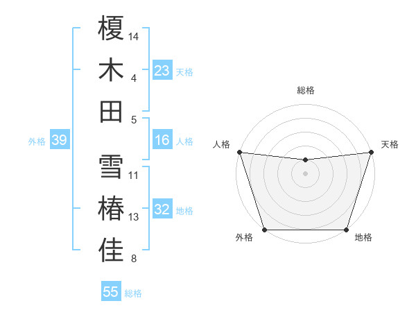 榎木田 雪椿佳さんの外格は39画の5点