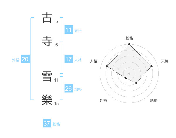 古寺 雪樂さんを姓名の画数から五運を鑑定