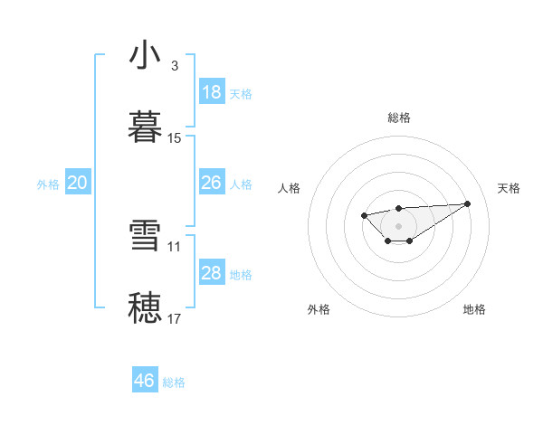 小暮 雪穂さんの天格は18画の4点!