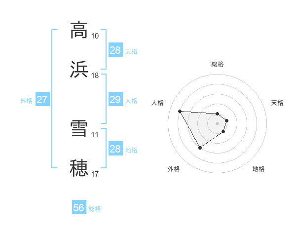 高浜 雪穂さんの天格は28画の1点!