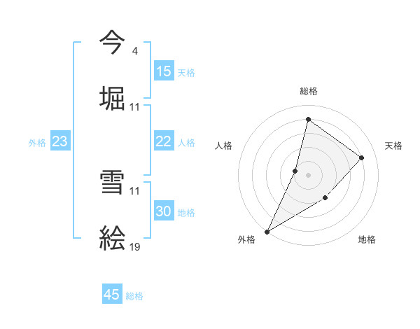 今堀 雪絵さんを姓名の画数から五運を鑑定