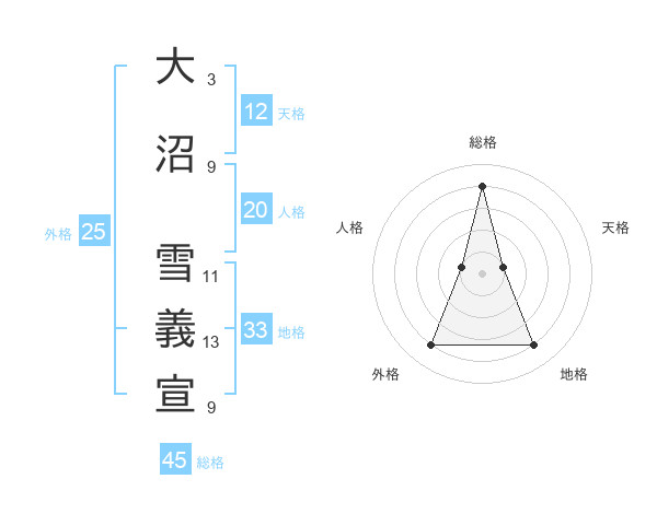 大沼 雪義宣さんを姓名の画数から五運を鑑定