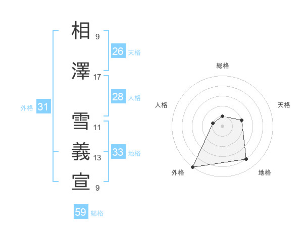 相澤 雪義宣さんを姓名の画数から五運を鑑定