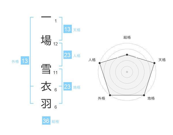 一場 雪衣羽さんを姓名の画数から五運を鑑定