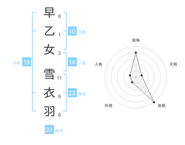 早乙女 雪衣羽さんを姓名の画数から五運を鑑定