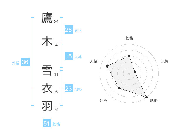 鷹木 雪衣羽さんの総格は51画の3点!
