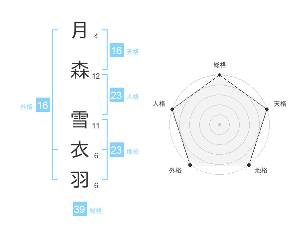 月森 雪衣羽さんを姓名の画数から五運を鑑定