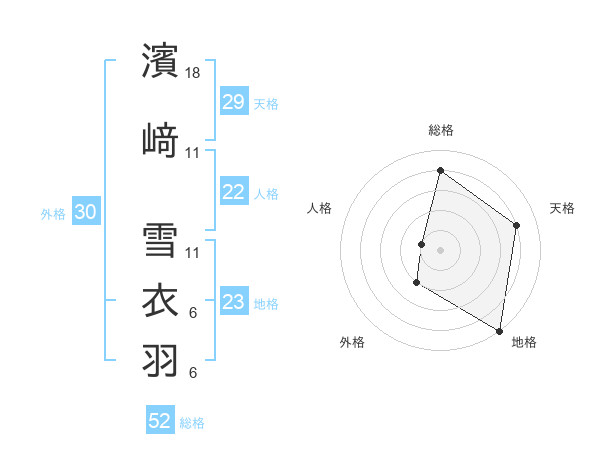 濱﨑 雪衣羽さんの総格は52画の4点!