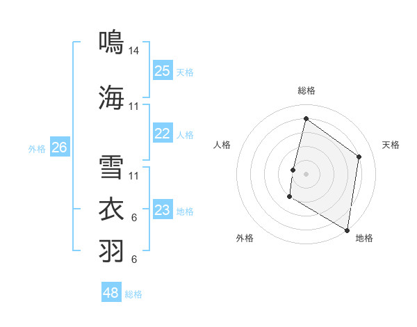 鳴海 雪衣羽さんを姓名の画数から五運を鑑定