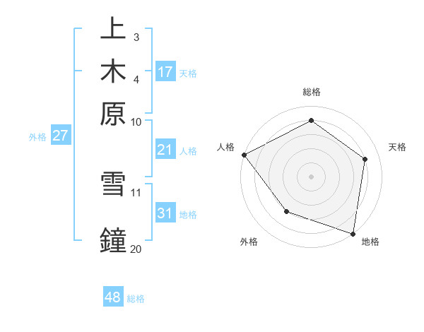 上木原 雪鐘さんの天格は17画の4点!