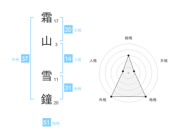 霜山 雪鐘さんの総格は51画の3点!