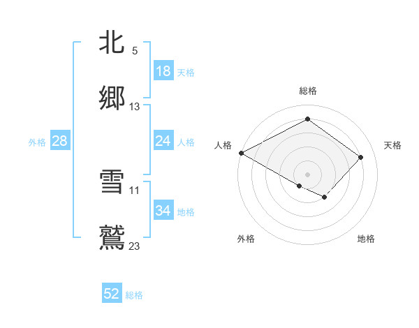北郷 雪鷲さんを姓名の画数から五運を鑑定