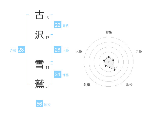 古沢 雪鷲さんを姓名の画数から五運を鑑定