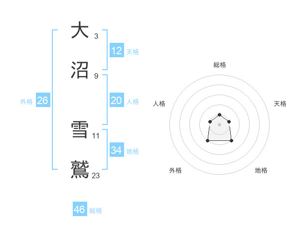 大沼 雪鷲さんの総格は46画の1点!