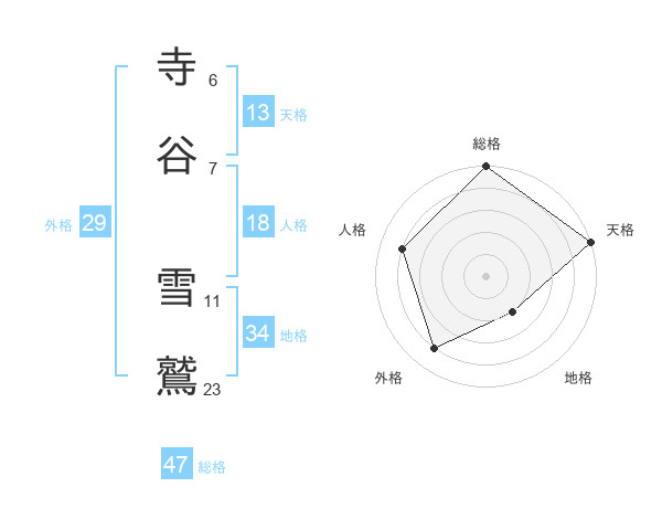 寺谷 雪鷲さんの総格は47画の5点!