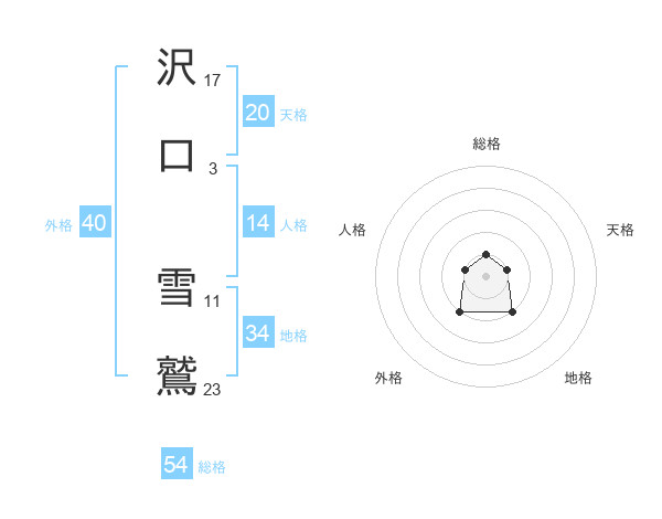 沢口 雪鷲さんを姓名の画数から五運を鑑定