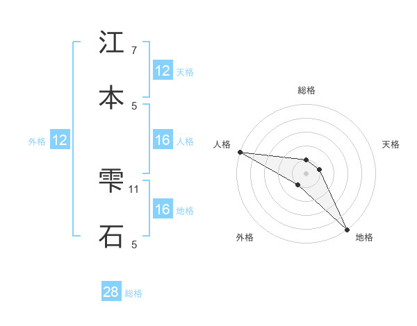 江本 雫石さんの総格は28画の1点!