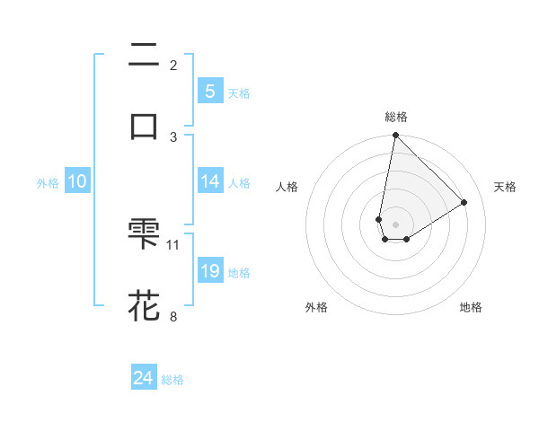 二口 雫花さんの総格は24画の5点!