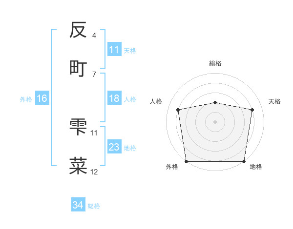 反町 雫菜さんの総格は34画の2点!