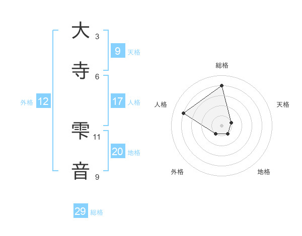大寺 雫音さんの総格は29画の4点!
