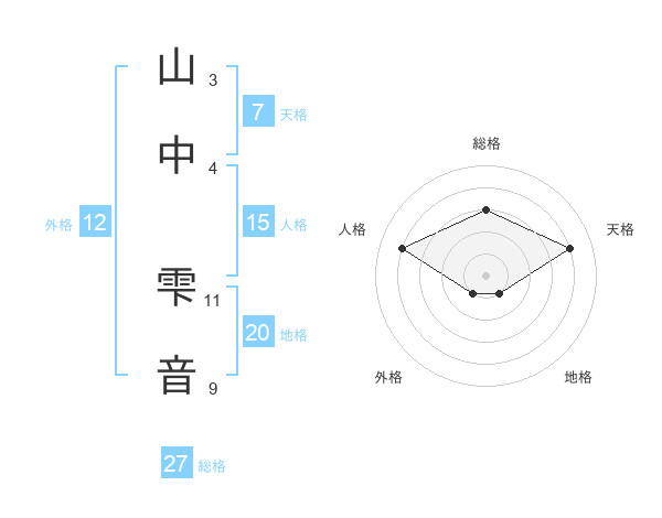 山中 雫音さんの総格は27画の3点!