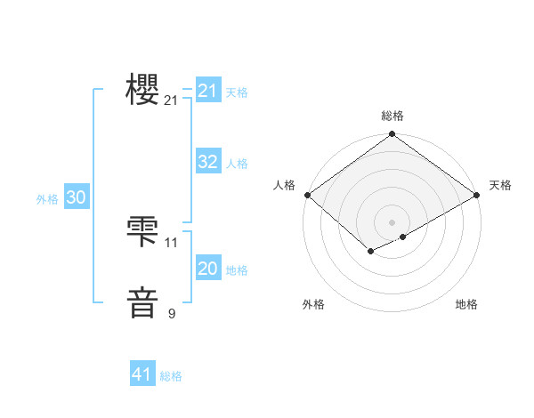 櫻 雫音さんの天格は21画の5点!