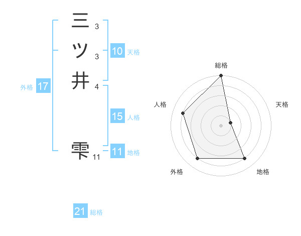 三ツ井 雫さんを姓名の画数から五運を鑑定