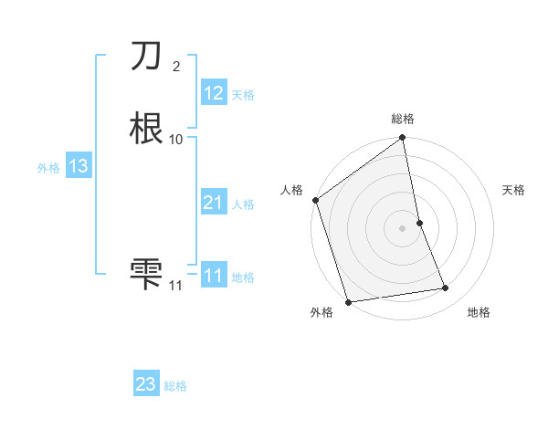 刀根 雫さんの総格は23画の5点!