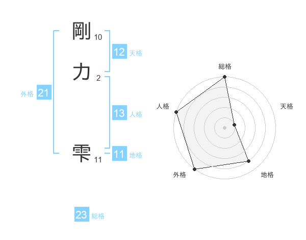 剛力 雫さんの総格は23画の5点!