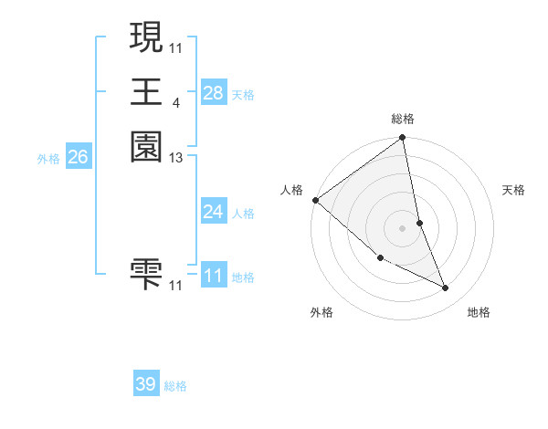 現王園 雫さんの地格は11画の4点!