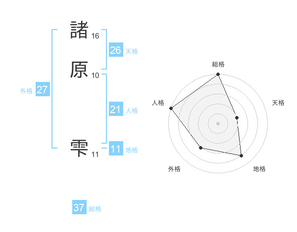 諸原 雫さんの総格は37画の5点!