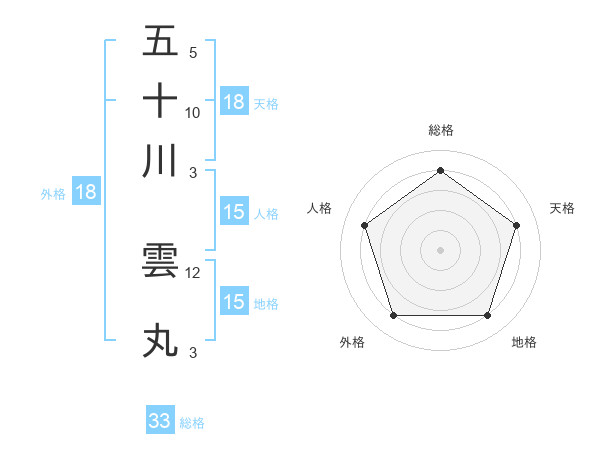 五十川 雲丸さんを姓名の画数から五運を鑑定