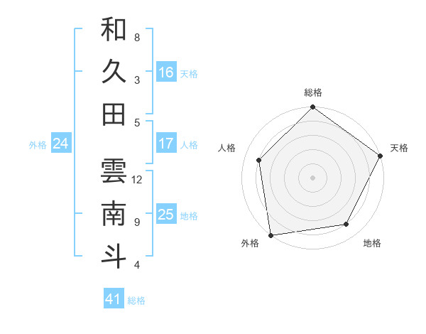 和久田 雲南斗さんの外格は24画の5点!