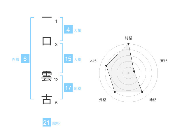 一口 雲古さんの総格は21画の5点!