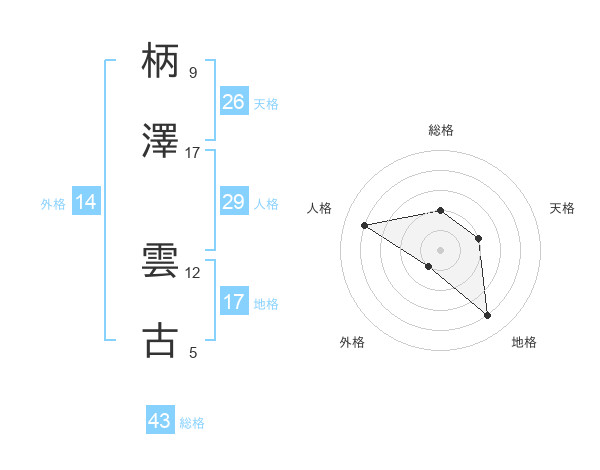 柄澤 雲古さんの地格は17画の4点!