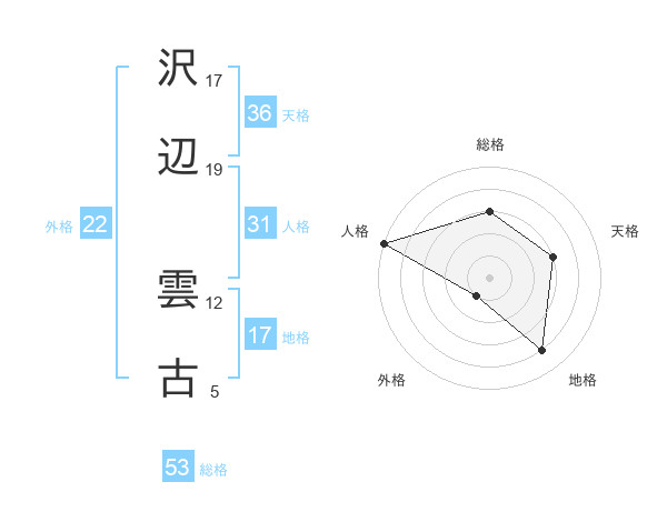 沢辺 雲古さんの総格は53画の3点!