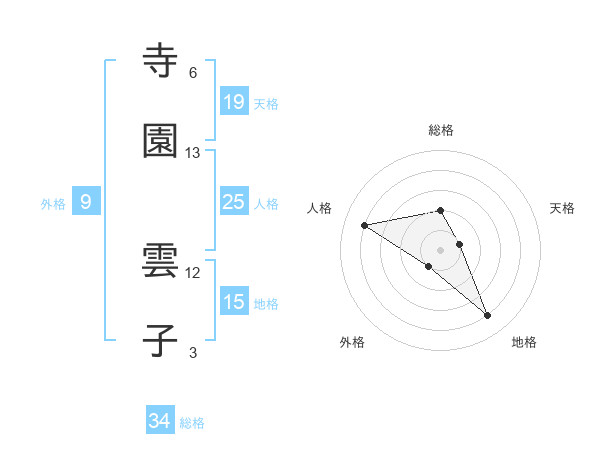 寺園 雲子さんを姓名の画数から五運を鑑定