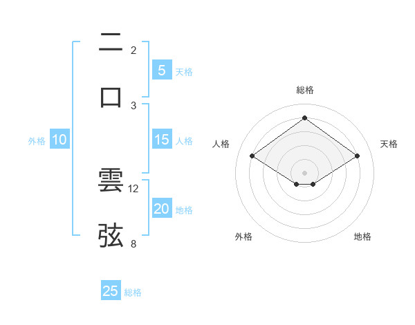 二口 雲弦さんを姓名の画数から五運を鑑定