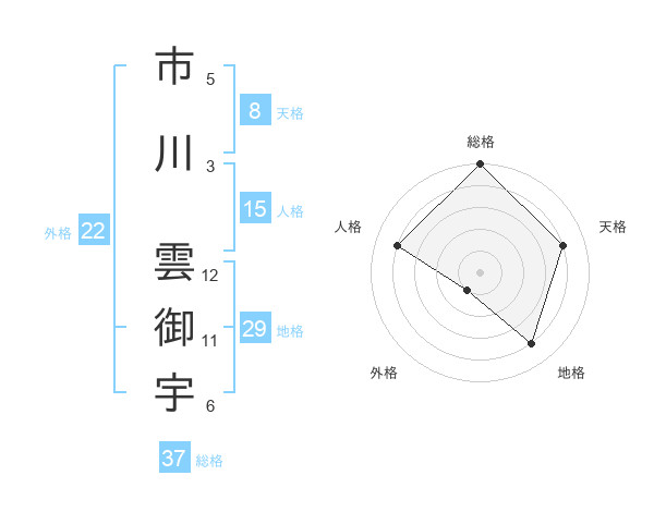 市川 雲御宇さんの総格は37画の5点!