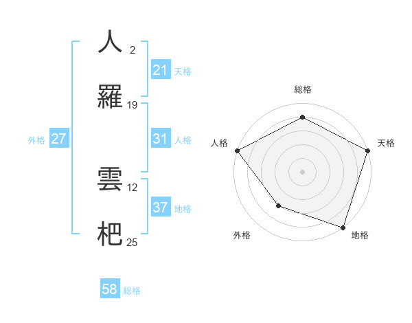 人羅 雲杷さんの天格は21画の5点!