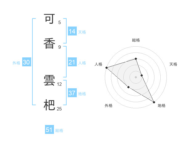可香 雲杷さんを姓名の画数から五運を鑑定
