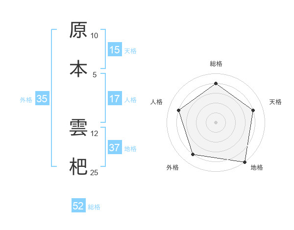 原本 雲杷さんを姓名の画数から五運を鑑定